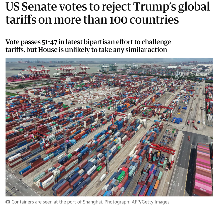 也正因此,参院本周的“三连投”,更多是一种高分贝的制度信号,它们会迫使白宫在涉及关税的政策上做战术权衡,也会改变市场与企业预期,但企业的报关与税负并不会自动变化。